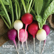 Make beautiful bunches with this mix of red, purple, pink, and white round radishes. Maturing over an extended period of time, they stay crisp and mild even when large. Great fun for children and adults alike.