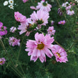 Cosmos Bipinnatus. Pink blooms with semi and fully double blooms. Brings loads of pollinators and are great for cut flowers and garden landscapes. Plants grow up to 3.5 feet tall and host loads of beautiful blooms.