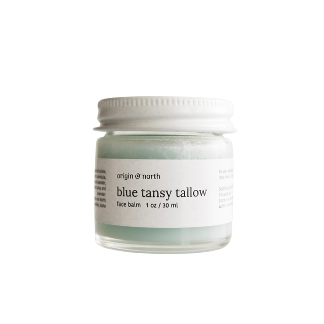 This formula blends grass-fed tallow with a small amount of jojoba oil infused with calendula and chamomile—two botanicals traditionally loved for their skin-soothing qualities. A whisper of blue tansy and lavender essential oils adds a soft herbal aroma and a peaceful, grounding feel without overwhelming delicate skin.