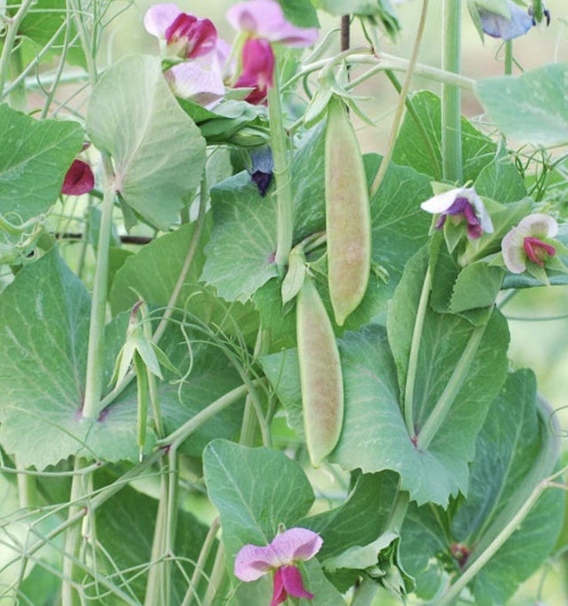 Unique two-toned pods are green with accents of pink. Bi-color pink blossoms are eye-catching in the field. Growing 5-6’ tall, Spring Blush’s productive hyper-tendrils easily grab onto trellises.