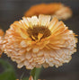 Calendula Officinalis. 1 1/2–3" blooms have layers of radiant peach petals with a bronze center.