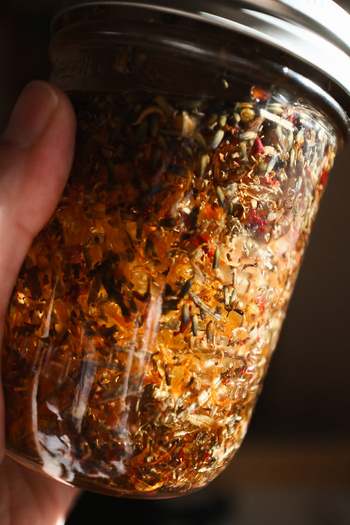 Herbs are steeped in oil over weeks rather than heated quickly.